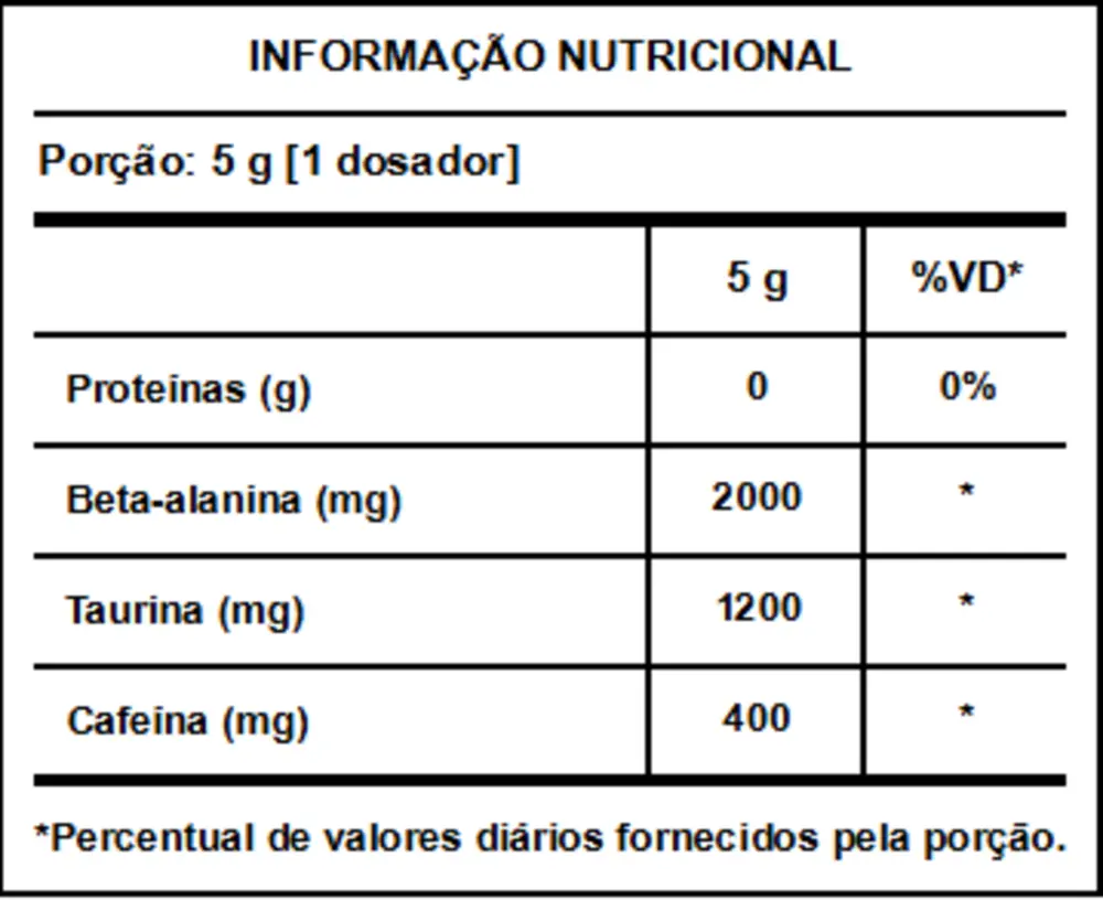 ✅ 2000 mg de beta-alanina: Ajuda a reduzir a acidose muscular, retardando a fadiga e permitindo treinos mais intensos e prolongados.