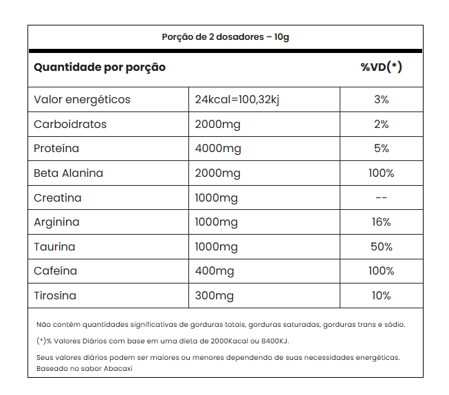 Resistência Muscular: A presença de 2g de beta-alanina ajuda a reduzir a fadiga muscular, permitindo treinos mais intensos e prolongados.
