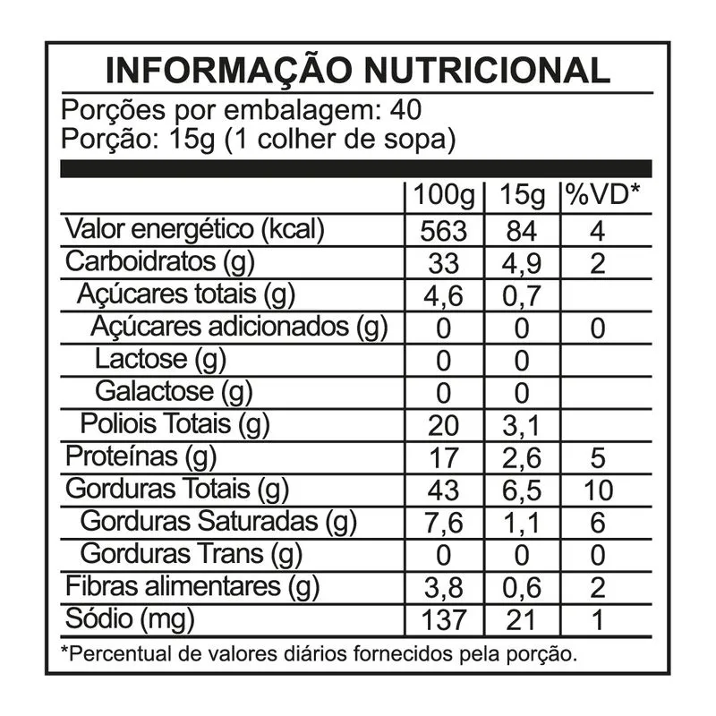 Alto teor de proteínas: Cada porção de 15g oferece entre 2,5g e 2,8g de proteínas, dependendo do sabor.