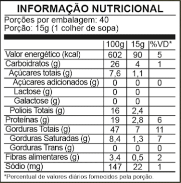 ✅ Alto teor de proteínas: Cada porção de 15g oferece entre 2,5g e 2,8g de proteínas, dependendo do sabor.
